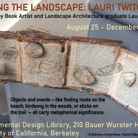 This was the second Reading the Landscape exhibition. The exhibition was held at the College of Environmental Design Library on the University of California Berkeley campus for Fall semester 2021. Some of the artists’ books had been shown before, some are in the collection of the library and some are new, such as the Covid and Me series. Most of the books can be found on this website.