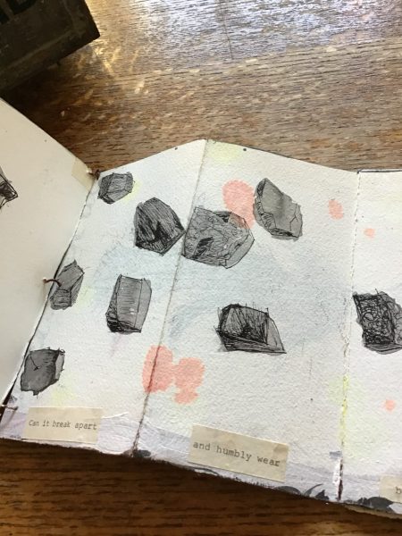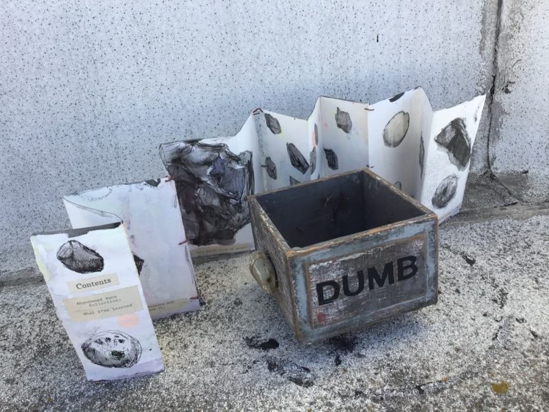 A book/box of drawings of abandoned rock collections found on the street or by the side of the road that don’t necessarily belong to the land they were found on. It feels sometimes ridiculous to make a book of drawings of found ordinary rocks, peoples abandoned collections that at one time meant so much. If it was about the beauty of the land, a moment in time, a keepsake of time and place, I think it’s important and a beautiful opportunity to honor it.