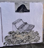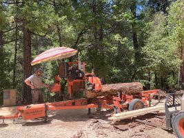 In May of 2022 we took down some dead Ponderosa pines on the land. In one of the biggest (+/-150 years) and most compromised we found incredible colors and patterns of fungus and bark beetle activity that probably aided in its demise. One of the trees had an old inclusion that ruined our Sawyer Theo’s blade. We had it cut down and milled on site into some amazing lumber–enough to build a new kitchen area, plus, plus…