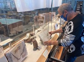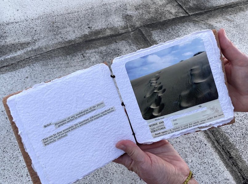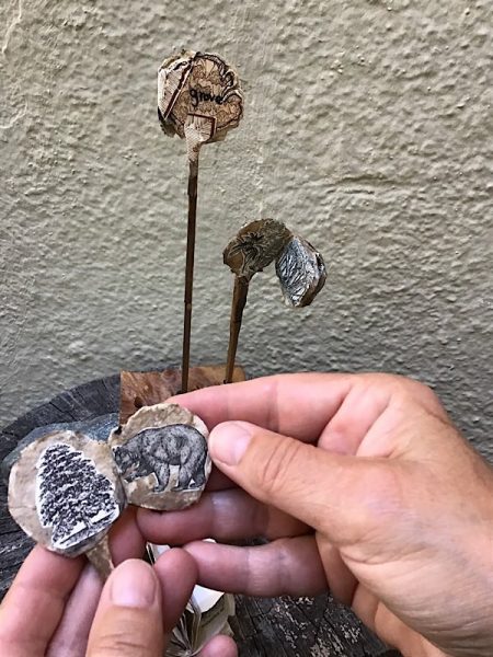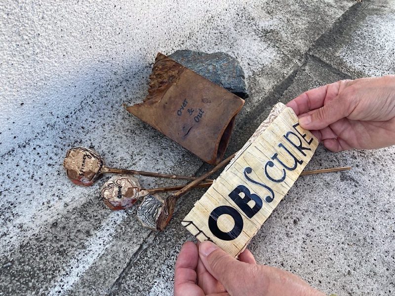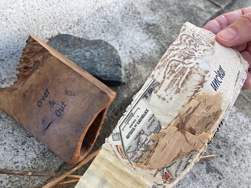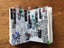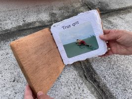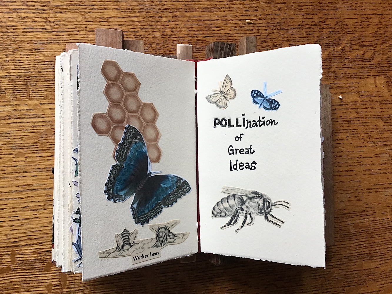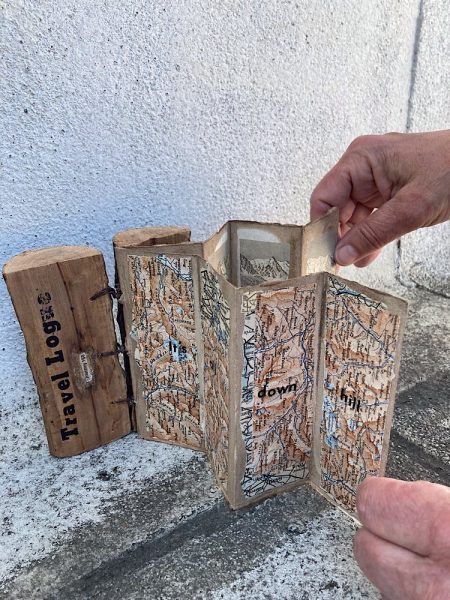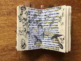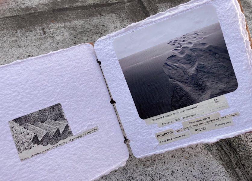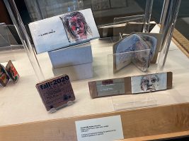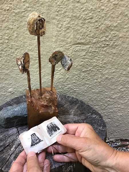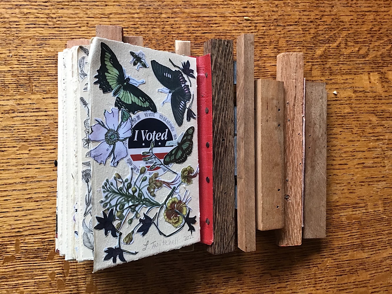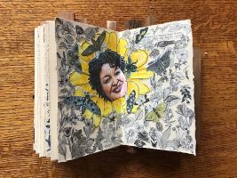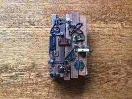 7.5″ x 4.5″ x 2″, Wood, metal, paper, collage, found objects 2022